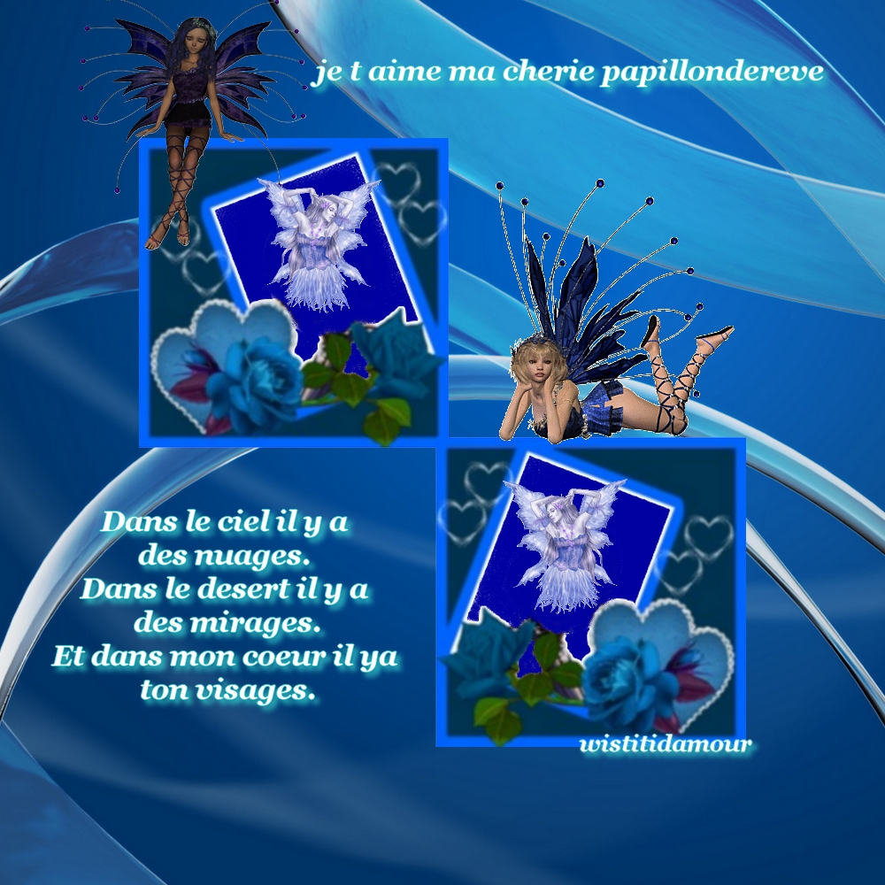 cette jolie créa est pour toi mon amour papillon de reve et comme tjr acompagner d un poeme je t aime mon amour et rien au monde ne brisera notre amour eternel aller voir son blog